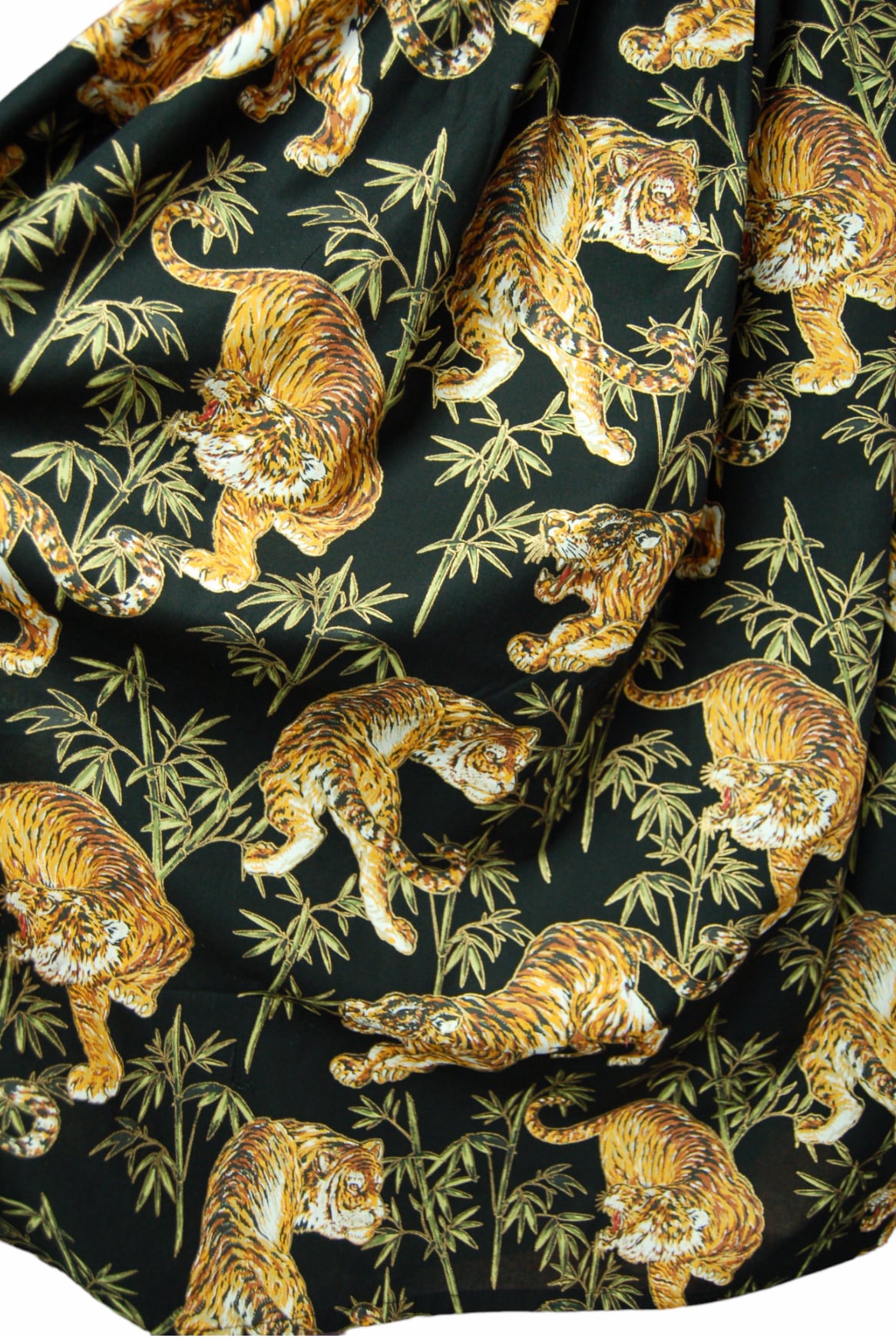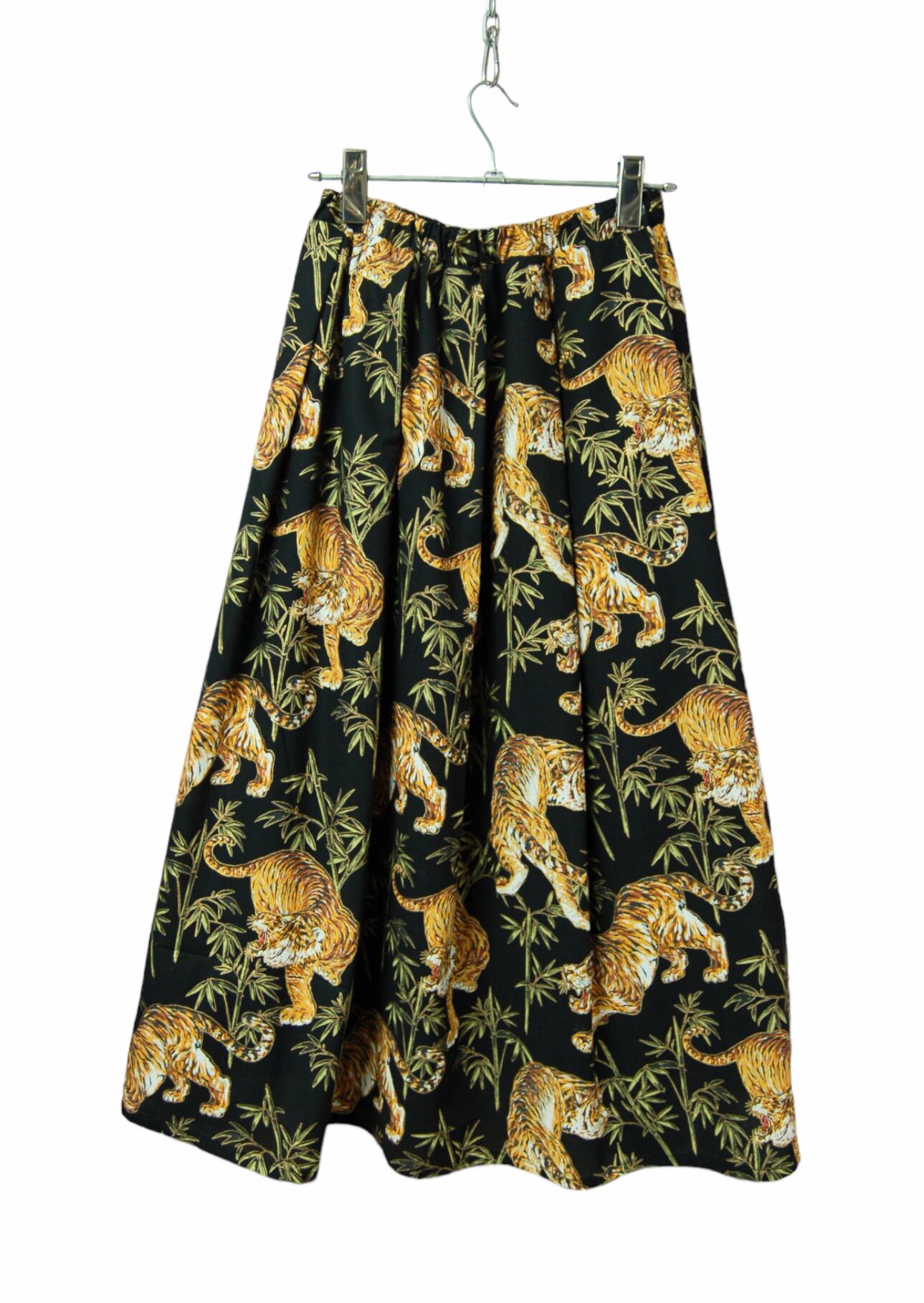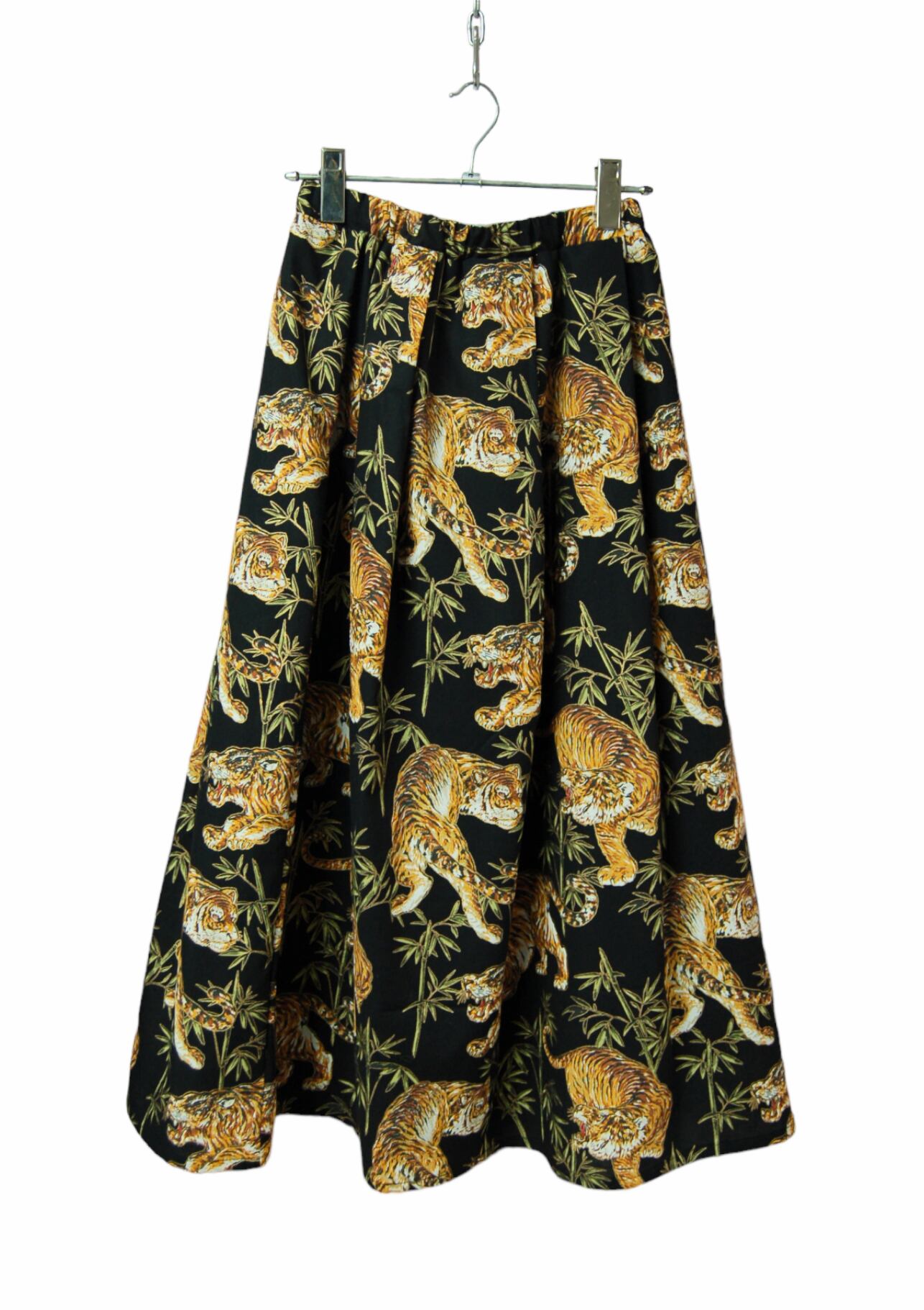 虎 和柄 フレアプリーツロングスカート:ブラック