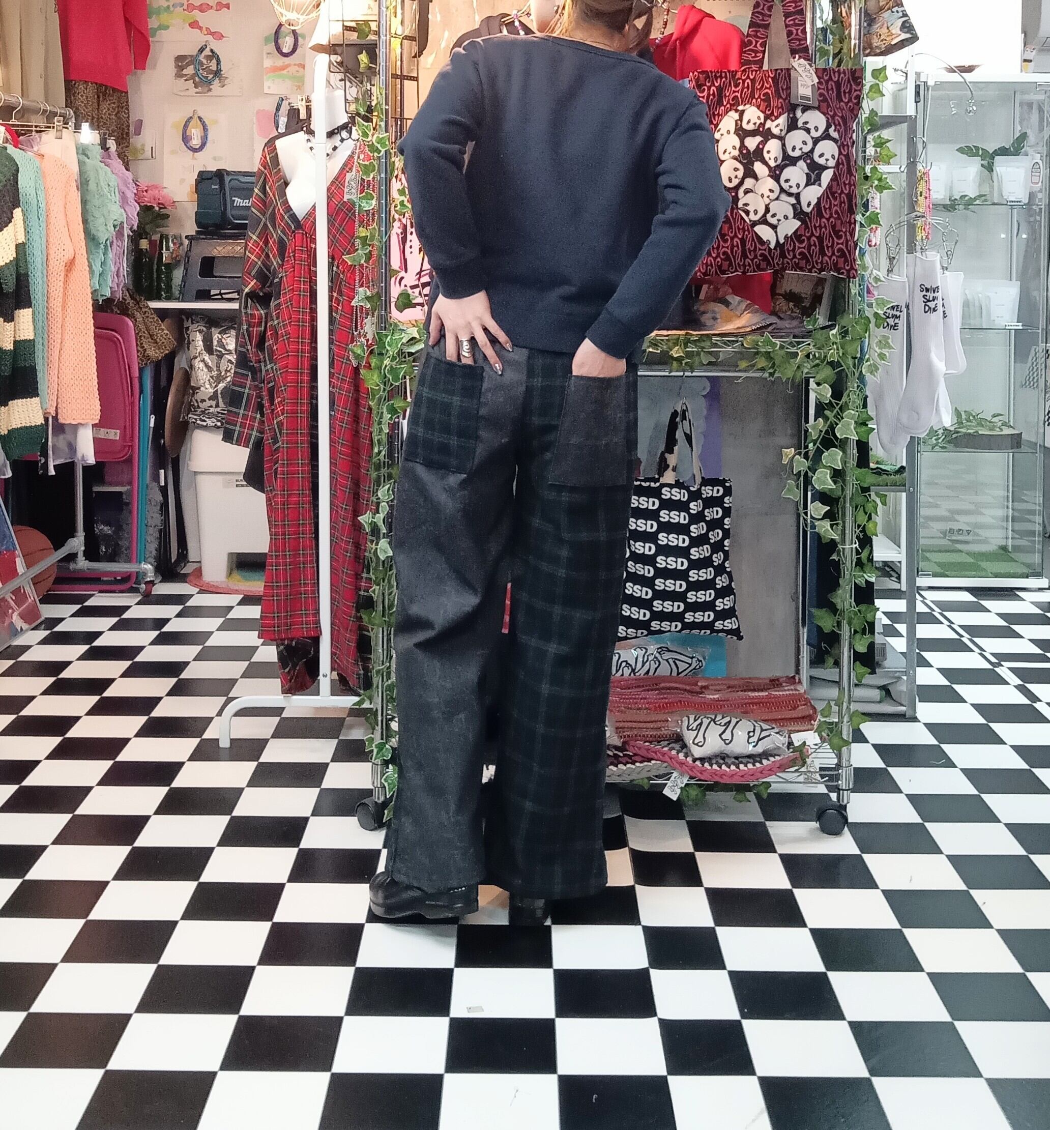 ブラックウォッチ×ブラックウォッシュデニム 2カラーワイドパンツ