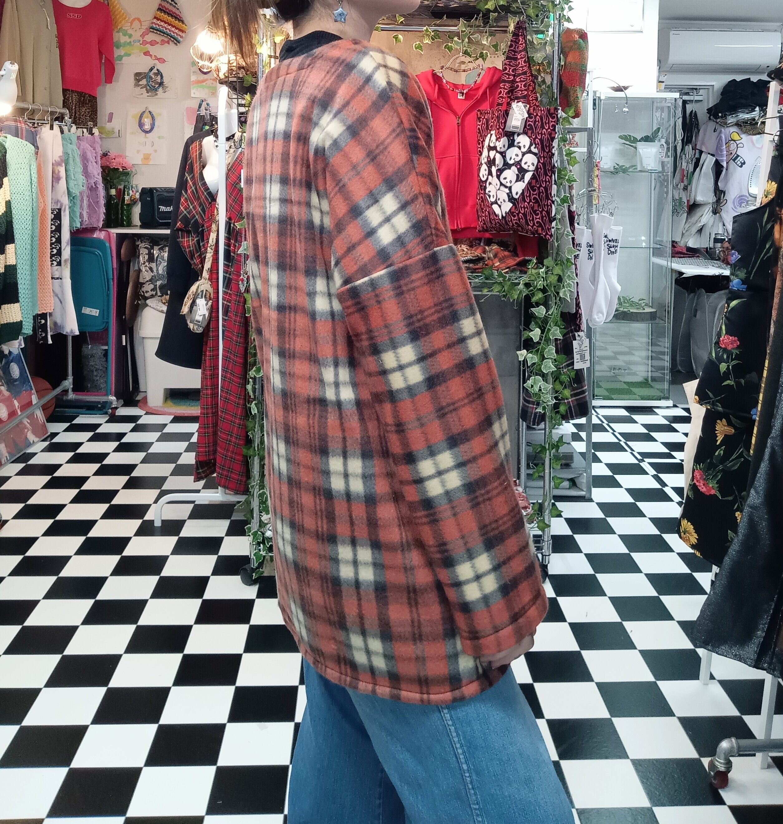 タータンチェック フリース カーディガンジャケット:オレンジ