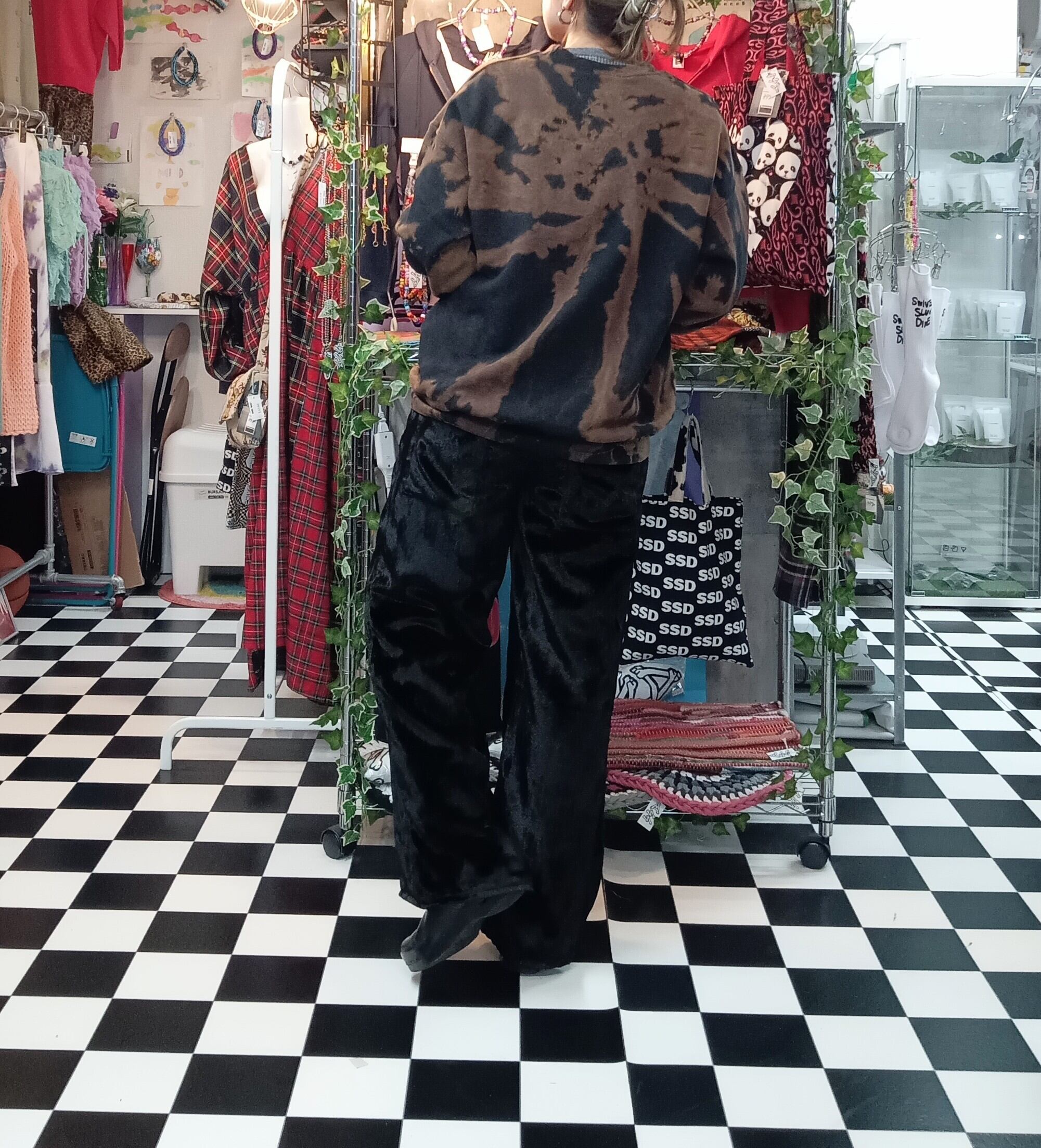 裏地付き:フェイクファーワイドパンツ:ブラック