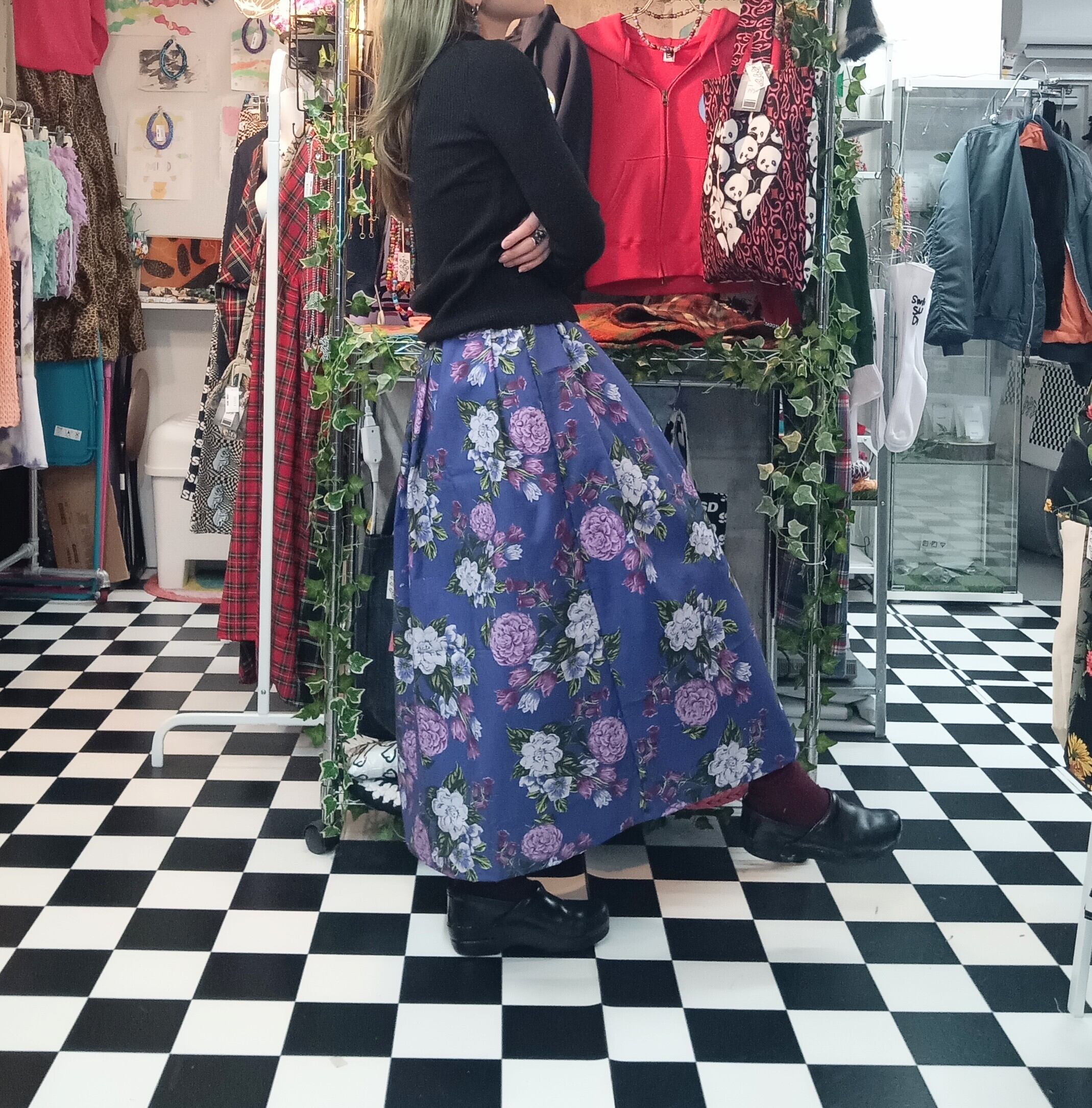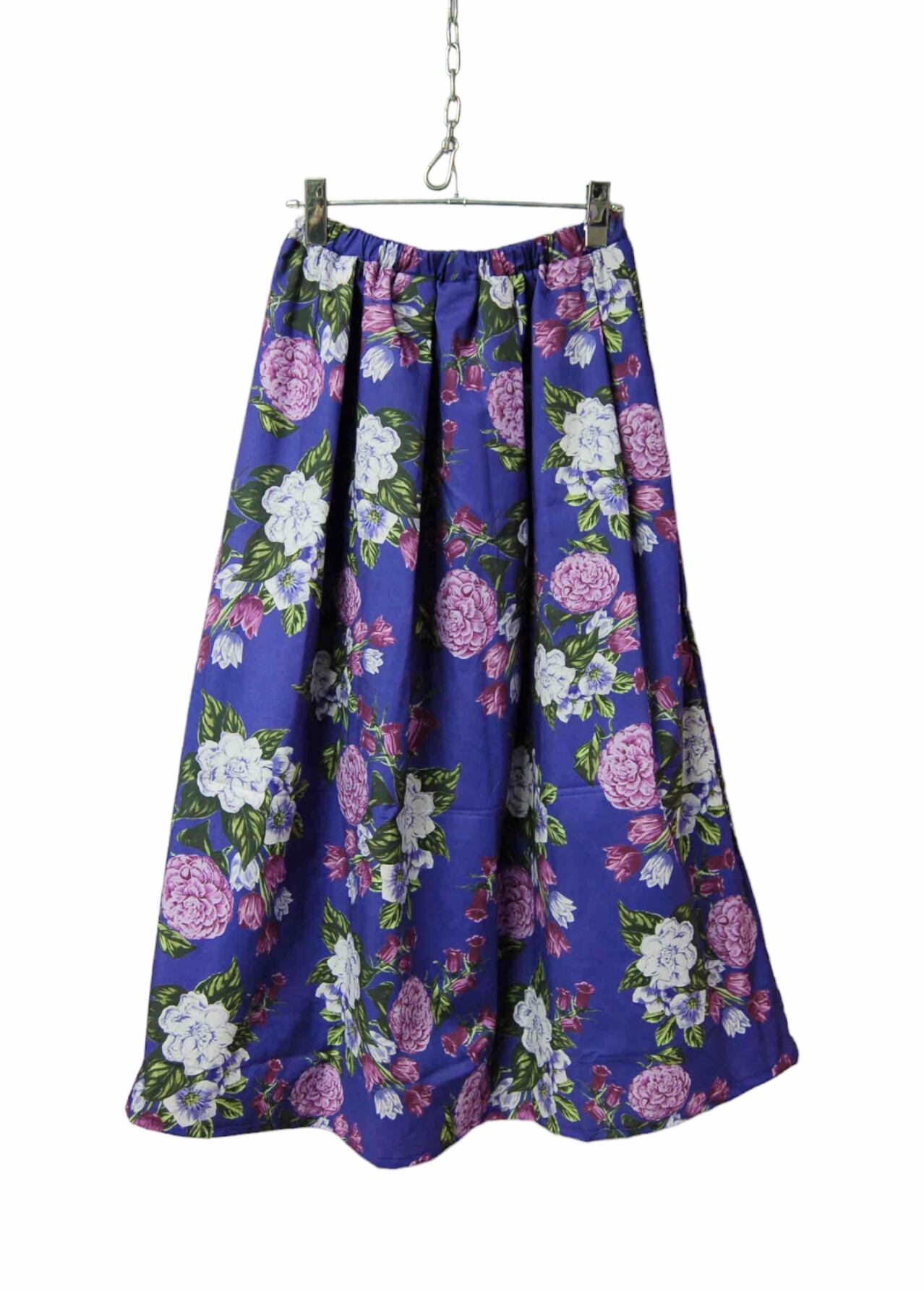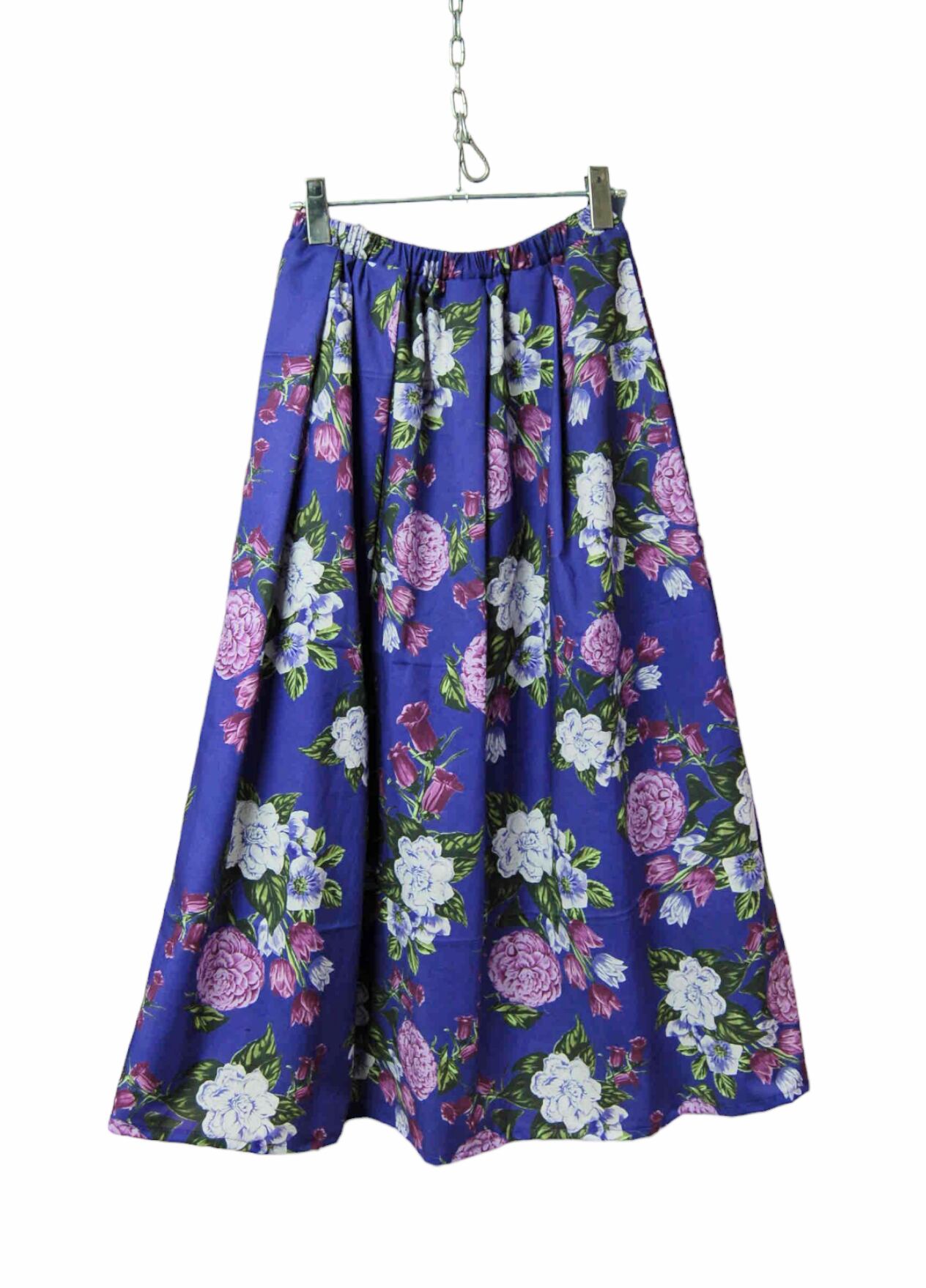 USAcotton パープルフラワー フレアプリーツロングスカート