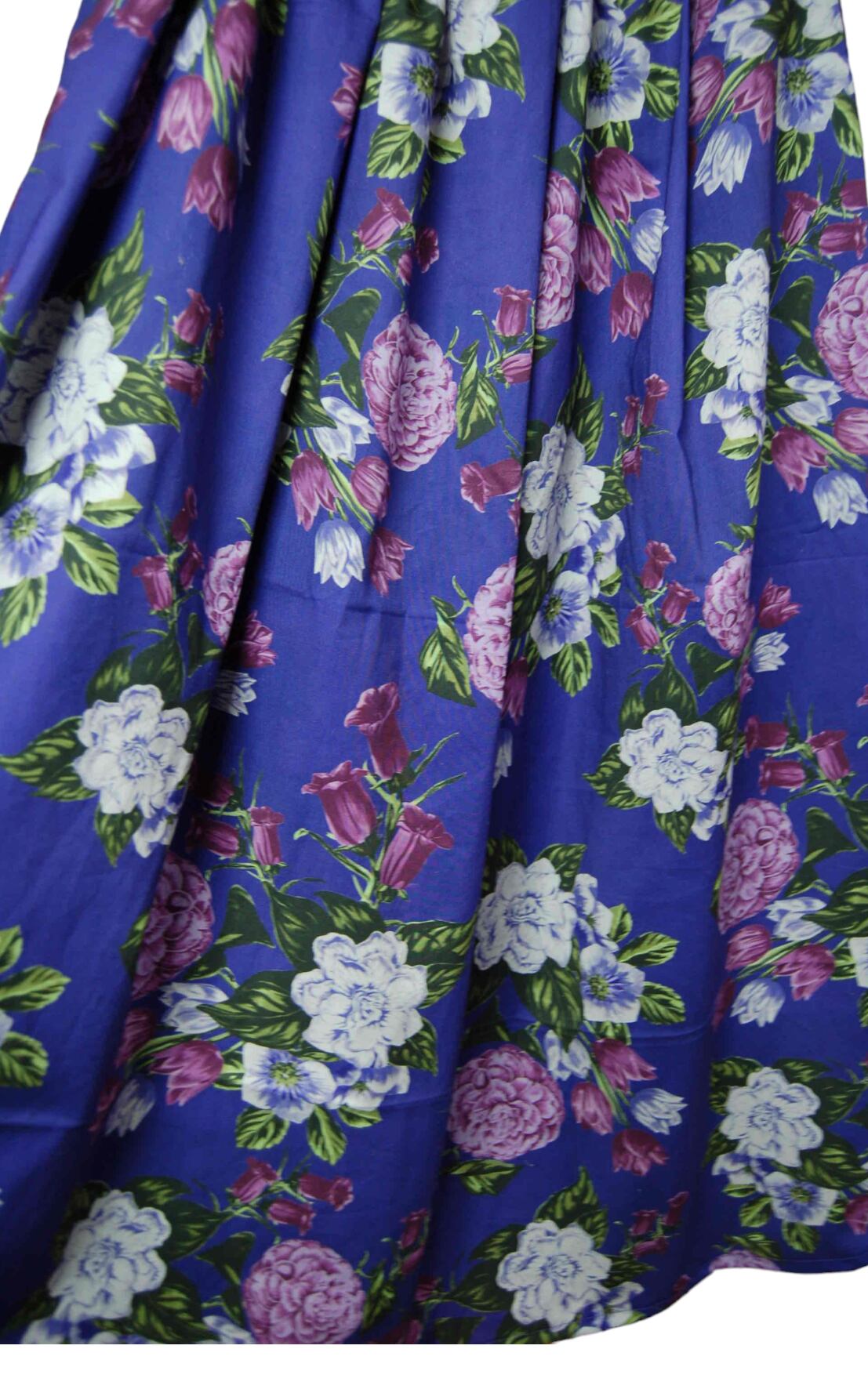 パープルベースのフラワーデザインがエレガントで鮮やかな色使いのUSAコットン地。