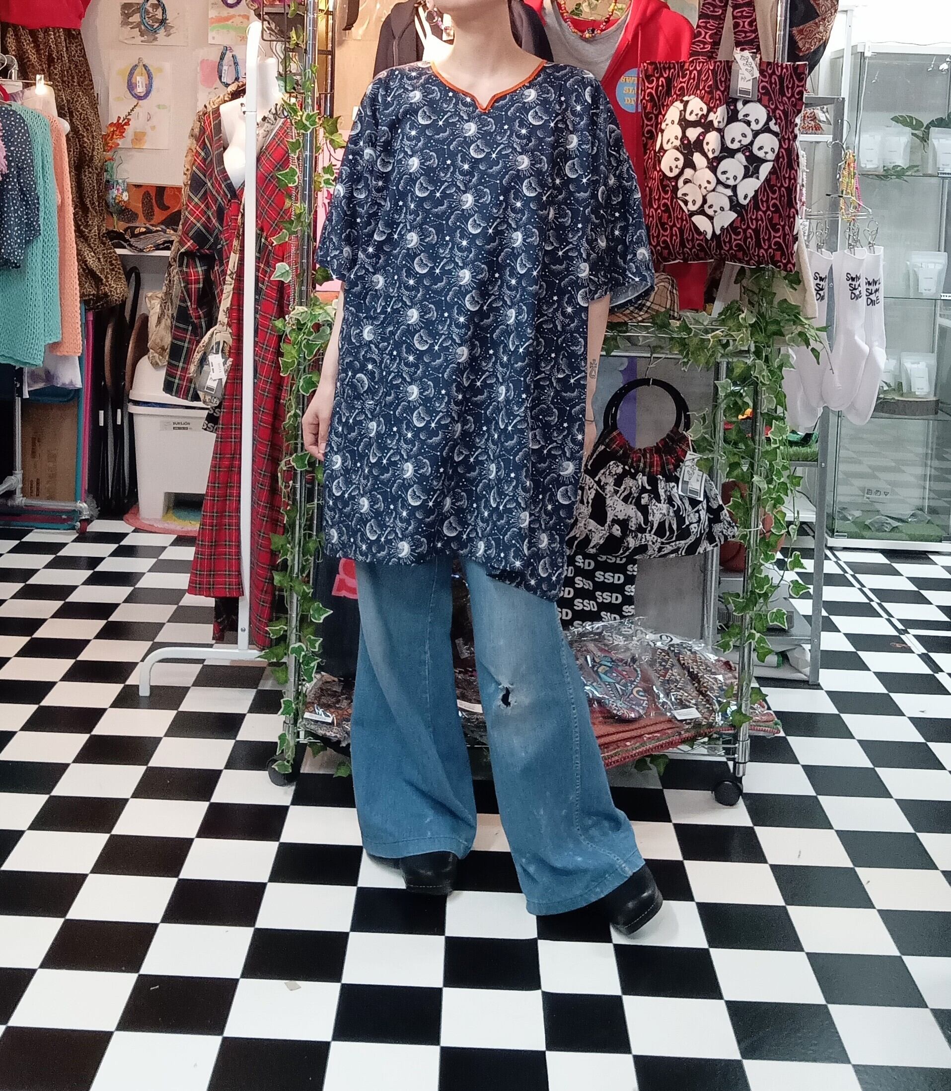 月星夜空 コットン ポンチョチュニック:ネイビー