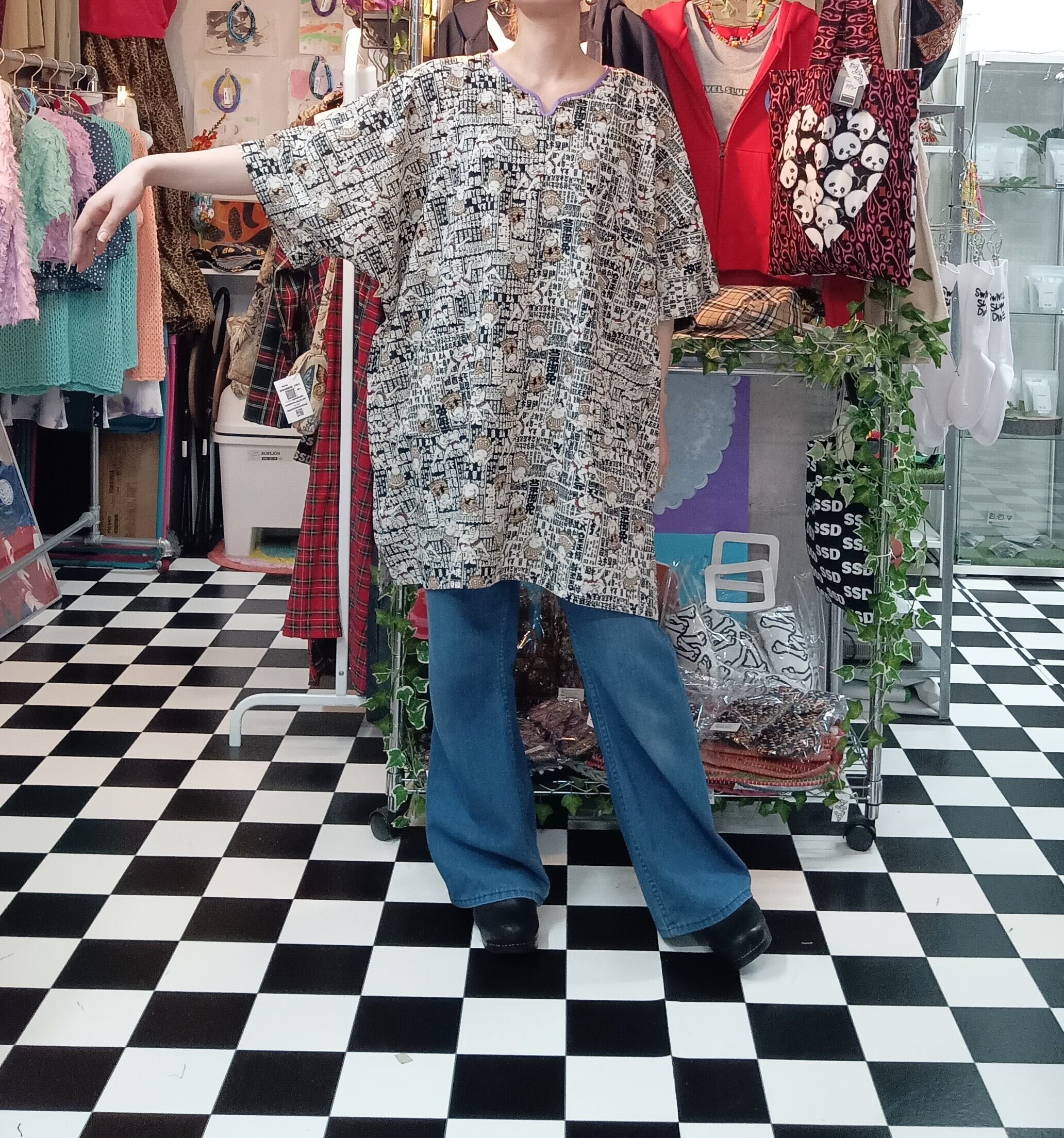 インパクトのある総柄デザインながらも落ち着いた色味で他にない一点。
