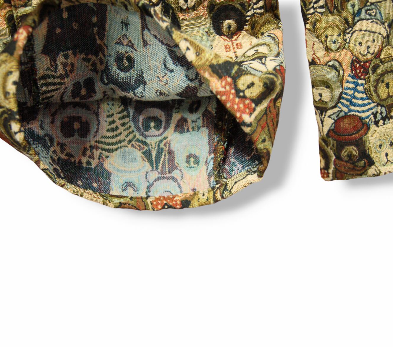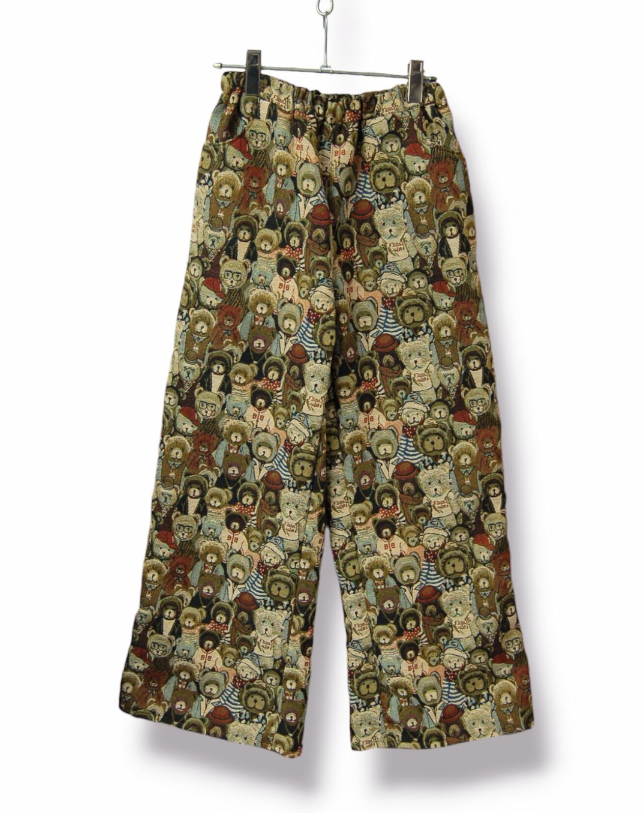テディベア柄のゴブラン織ワイドパンツ。