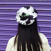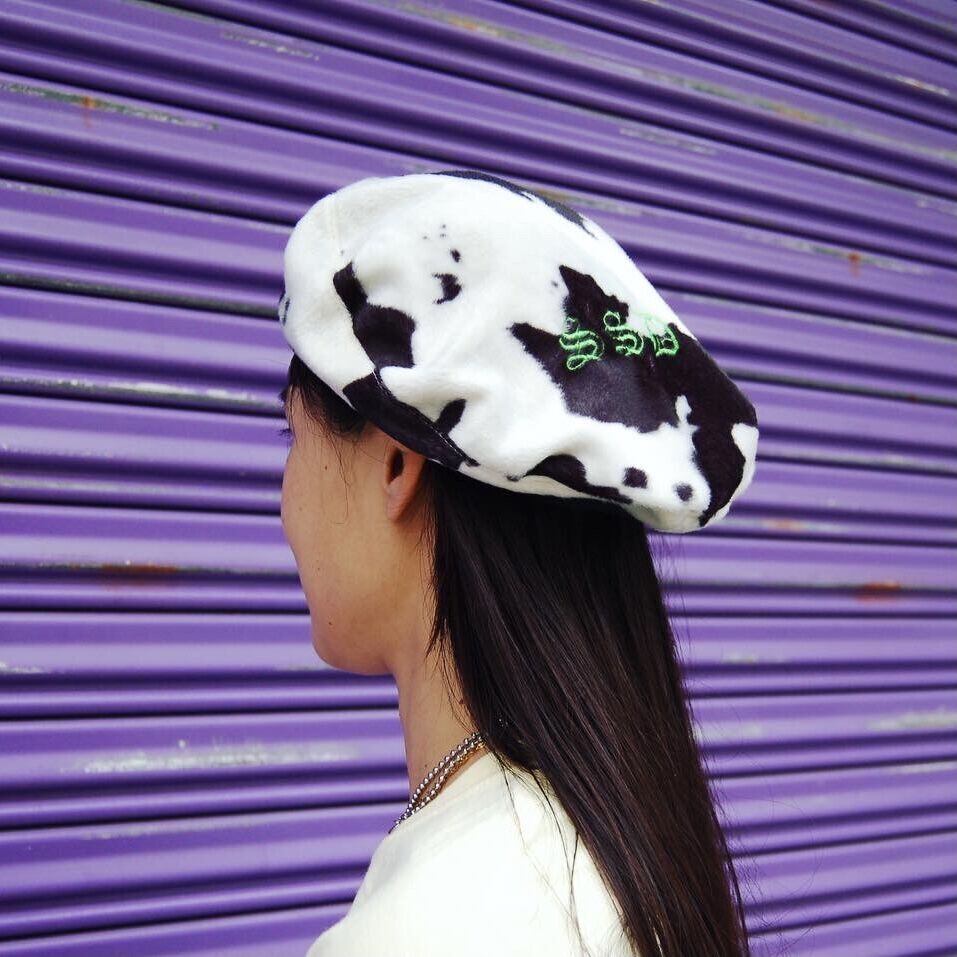 SSD 刺繍 牛柄フェイクファーベレー帽。